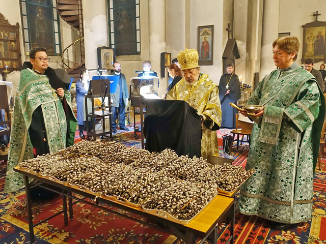 聖枝祭「早課」枝の祝福では、東スラヴの習慣に基づきネコヤナギの枝が祝福された。