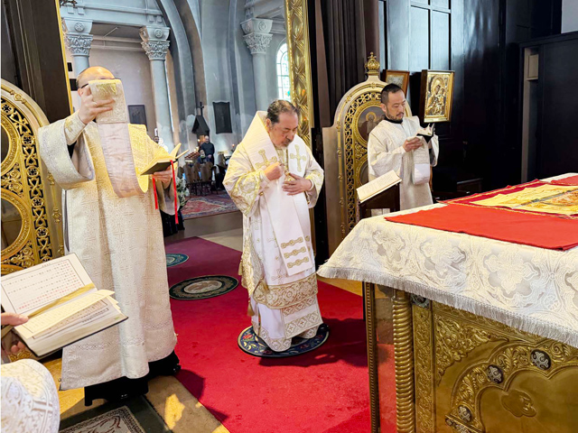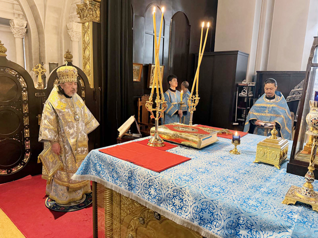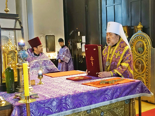 今年の生神女福音祭は受難週・聖大火曜日に重なることから奉事規程・奉神礼指示書に則り、前晩には晩堂大課・祭日リティヤから早課・1時課まで、祭日当日には時課・晩課に続けて金口イオアンの聖体礼儀を執行した。