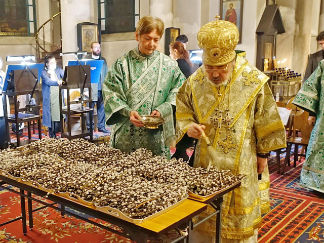 聖枝祭「早課」枝の祝福では、東スラヴの習慣に基づきネコヤナギの枝が祝福された。
